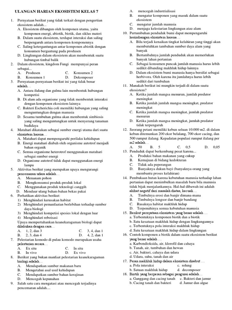 50 pilgan bab ekosistem (ekologi) & jawaban . Soal uas mid semester berupa soal pilihan ganda dan essay semua bab 1, 2, 3, . Bagi anda yang sedang mempelajari biologi bab . Ciliata yang berperan sebagai predator dalam ekosistem air tawar adalah … Soal ekosistem dan jawaban nya antiremed kelas 10 biologi 10 pertanyaan.